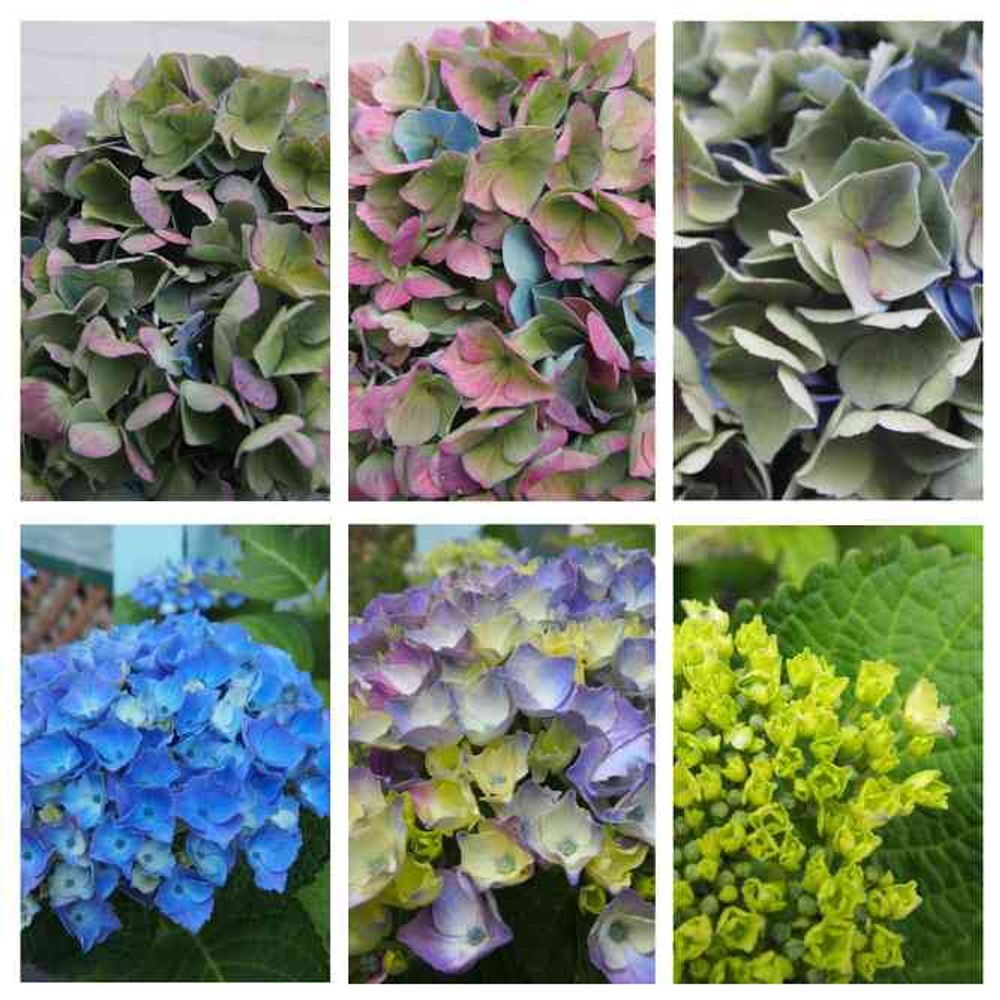 西安(シーアン)と言うアジサイ 七変化 上段中央が現在 紅く紅葉してきました^ ^ 石灰入れる時期が遅くピーク時はブルーに