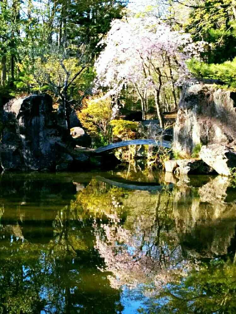 橋のしだれ桜、昨日は池の向かい側から撮ってみました📷お天気がよかったので水面も綺麗でしたよ~🤗🌸🌌