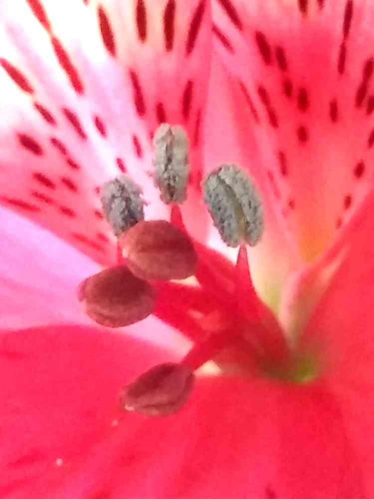 職場の4月の誕生日お祝いの生花の中のアルストロメリアが綺麗な赤だったので📱カメラを向けたら、この方が居られました💕