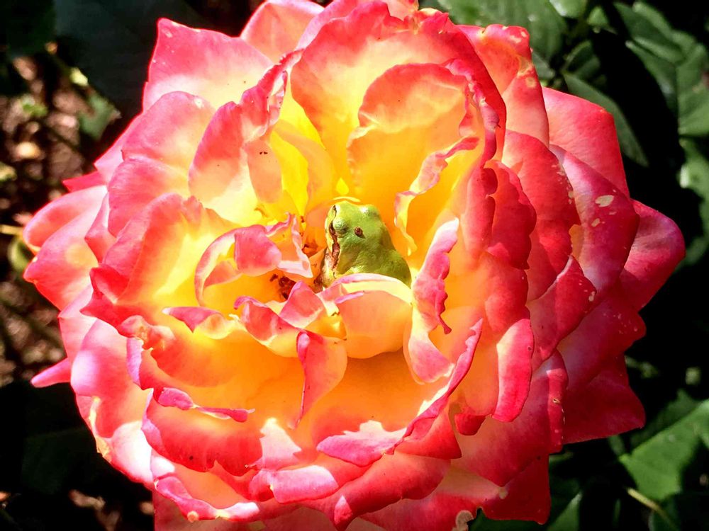 ここあさんのお出かけ先,バラとかえるさん,綺麗な色♡の投稿画像