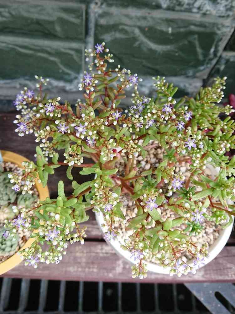 青くて小さな花の咲く一年草(?)のセダムです(*^^*)