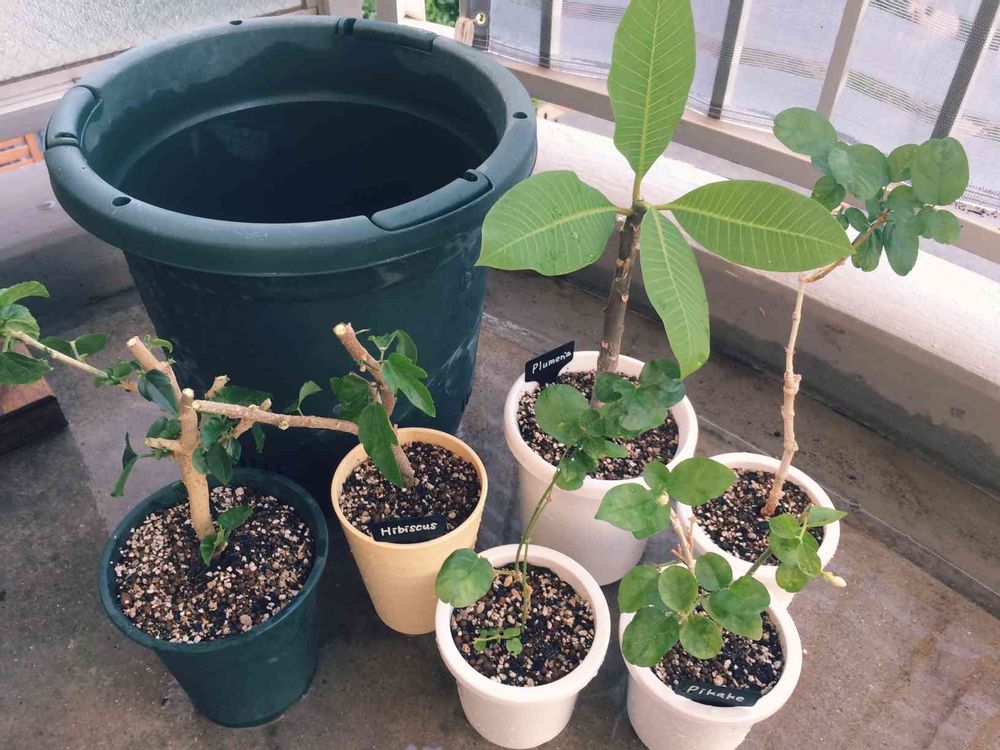 蕾のついてるハイビスカスは枝を水差し、ピカケは蕾の部分が下の方にあったのでうまく避けて剪定できました😍