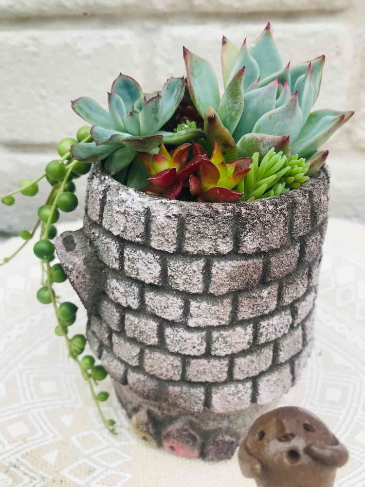 こんにちは😃そうなんです!!可愛い鉢をプレゼントして頂いたので、頑張って寄植えしてみました😄