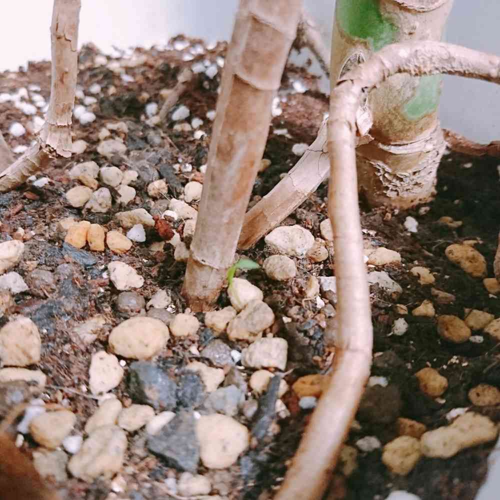 ところで、写真は先日茎だけに強剪定したモンステラなのですが、一昨日株元から芽が出ていました。