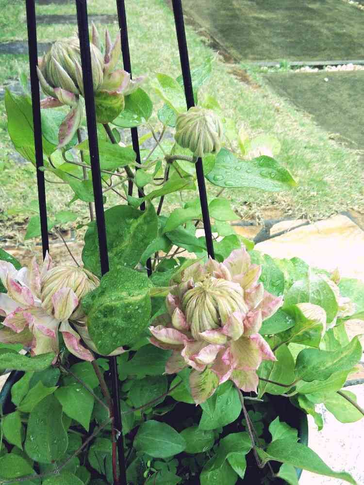蕾のうちから夢のようなアンティークカラーのクレマチス春姫