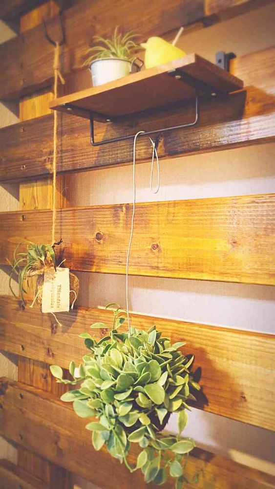 旦那が、穴を開けないと飾れないセリアの木製ラックを少し改造して、引っ掛け式の吊り棚にしてくれました。