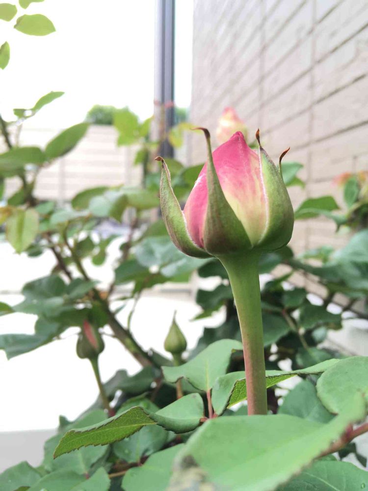 おはようございます。我が家のビバリーが膨らんで色付いています。あと少しで開花です。バラの開花が楽しみな時期になってきました✨