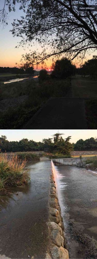 川の水にも朝日が当たってオレンジに輝いてました✨