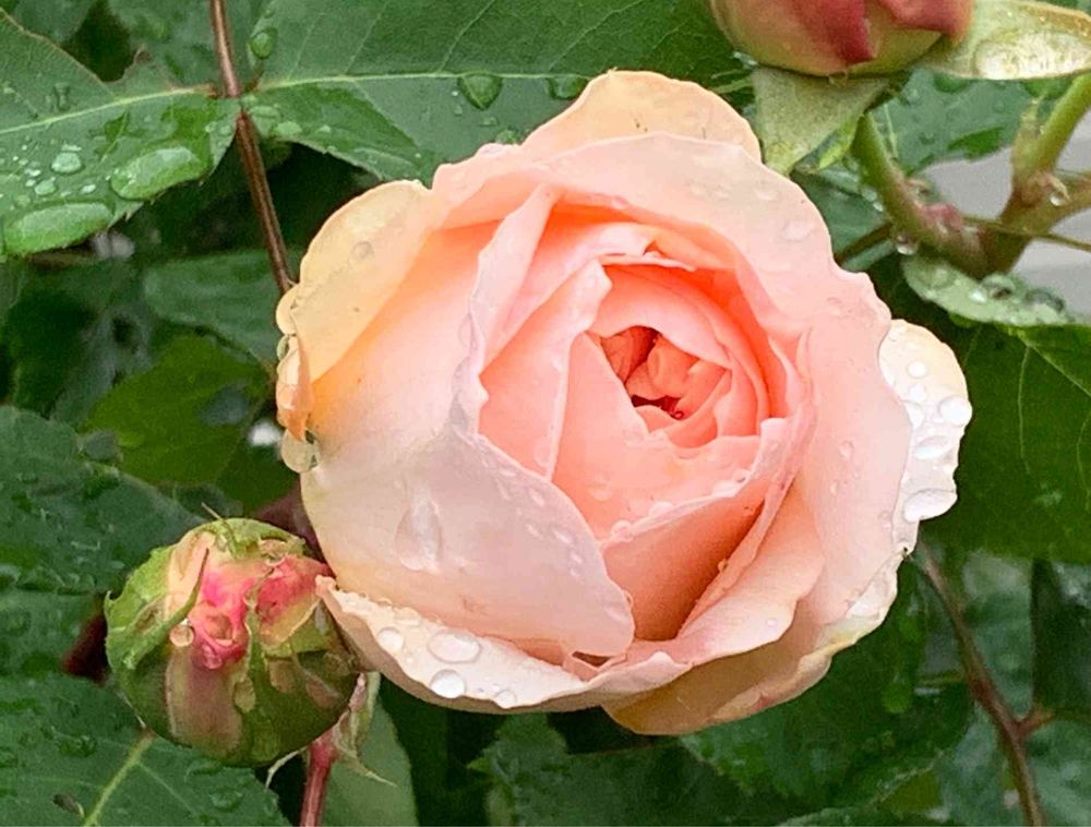 開きかけも可愛いイングリッシュローズのエブリンです。(^-^)
