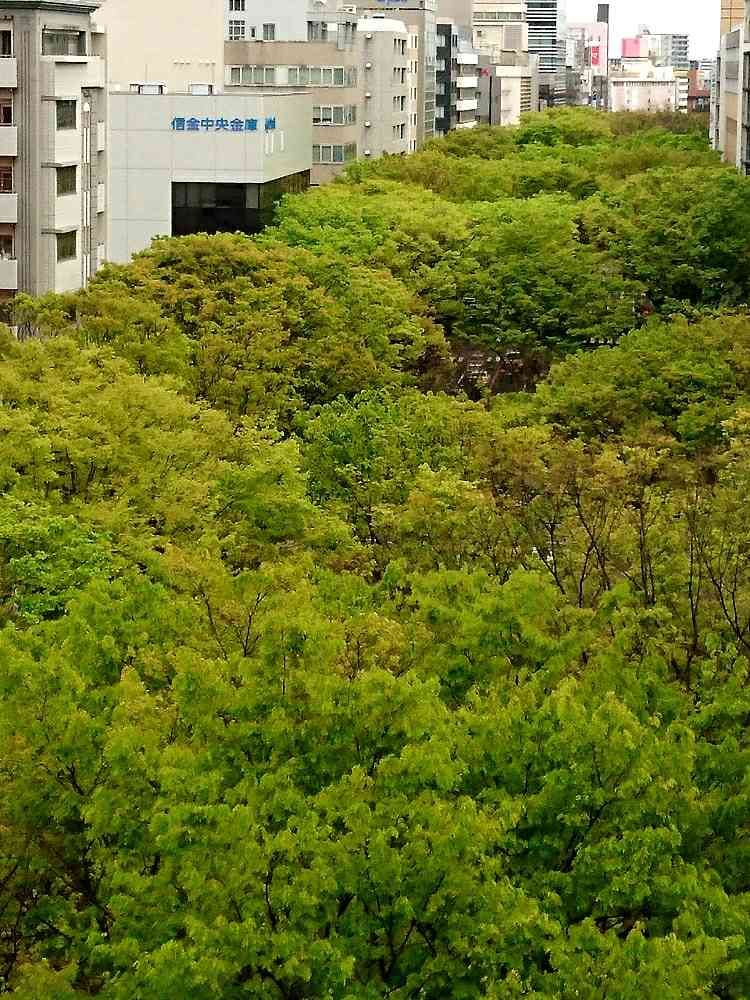仙台市内青葉通のけやきの新緑を上から見ました!