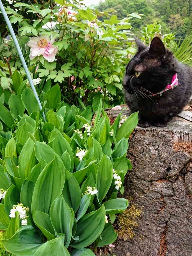 気まぐれな猫さんも、スズランに見とれて思わずポージングしたのでしょうね😻