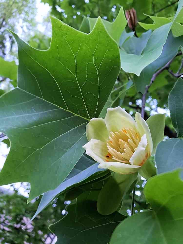 近所のユリノキが1輪だけ開花してるのを発見しました☺️