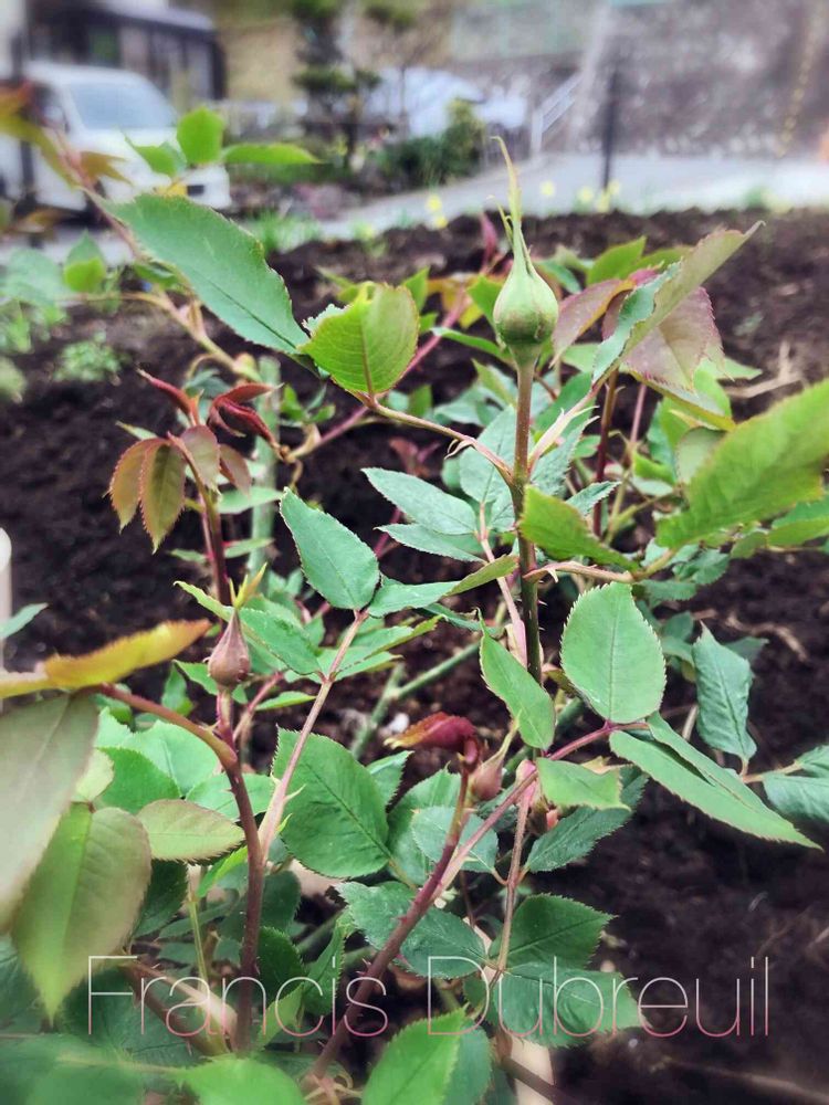 今年、うちのバラでは一番はじめに咲くことになると思われるバラ*フランシス・デュブリュイ🌹