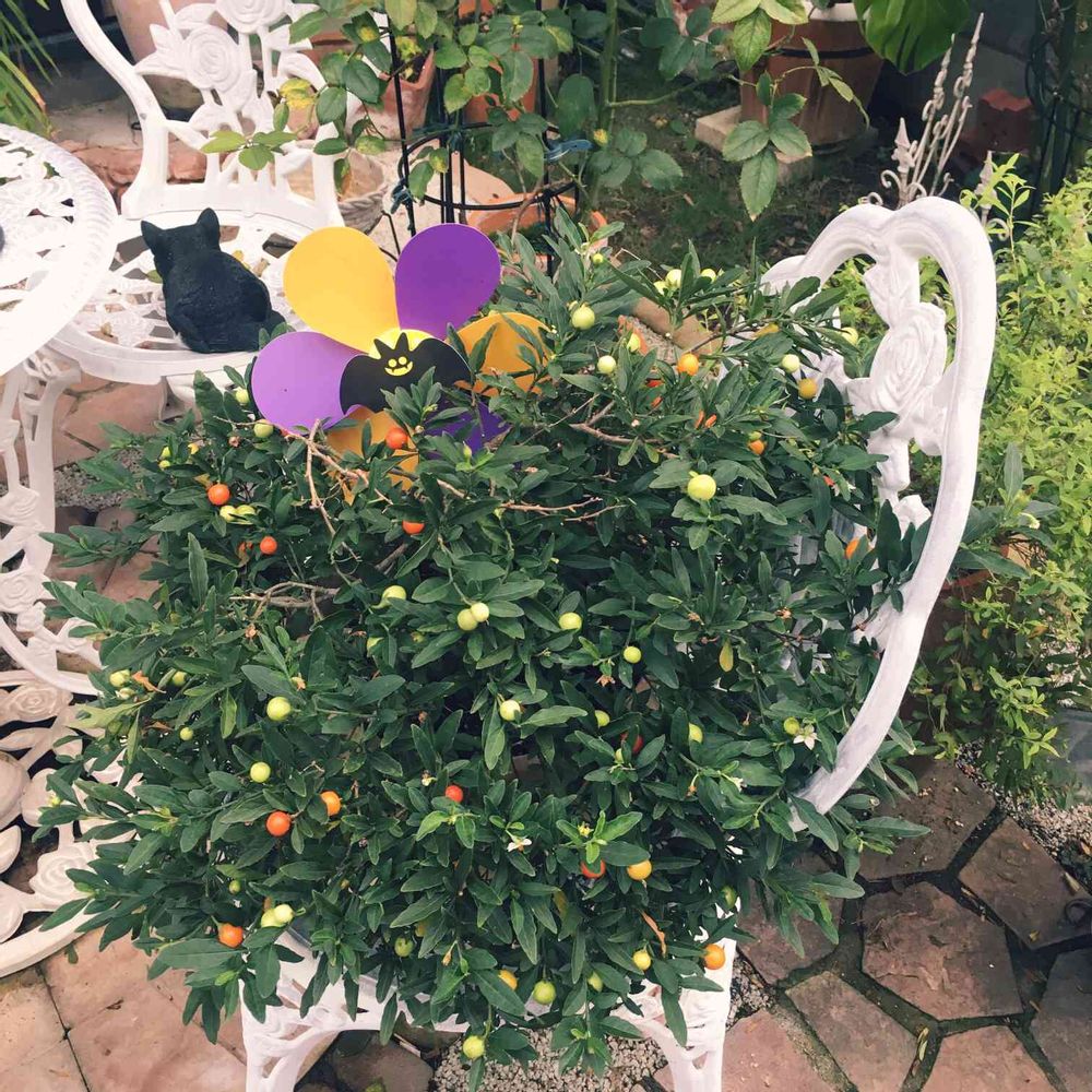 ずっと前にハロウィンの寄せ植えに入れたオレンジ色の実のなるこの子 名前はわからないけど鉢が見えないほどワッサワサになりました〜〜🎃👻😈✨