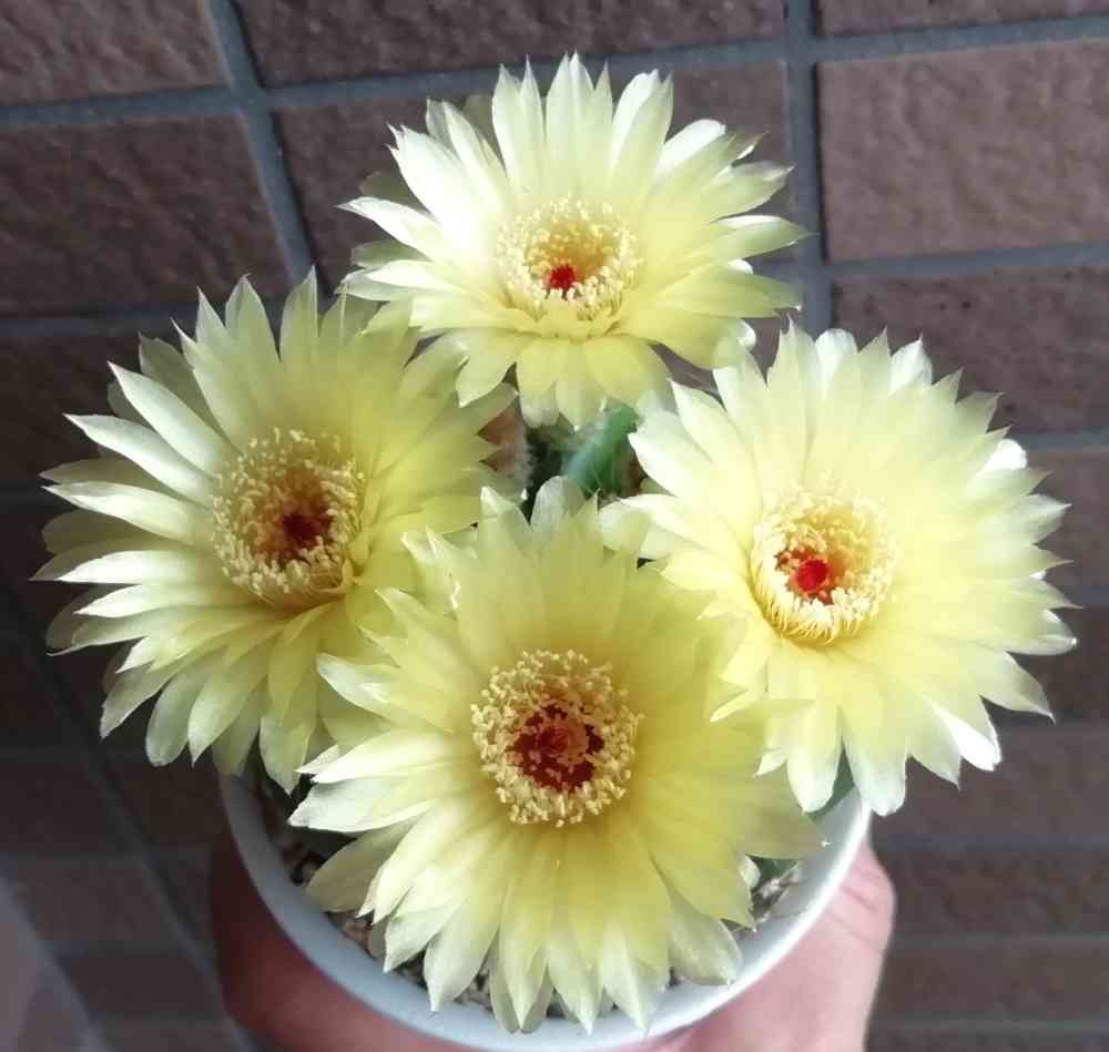 お花も大きくて真ん中の雌しべが赤、サボテンもツルツルお肌の綺麗なグリーンです。