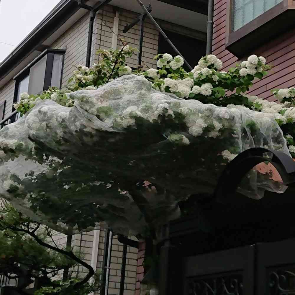 花びらが、ちらなおよう、散っても、道路を、汚さないようビニールで、覆っているまでは、判りますが、肝心の華の名前が判りません❗。😐 (*_*)