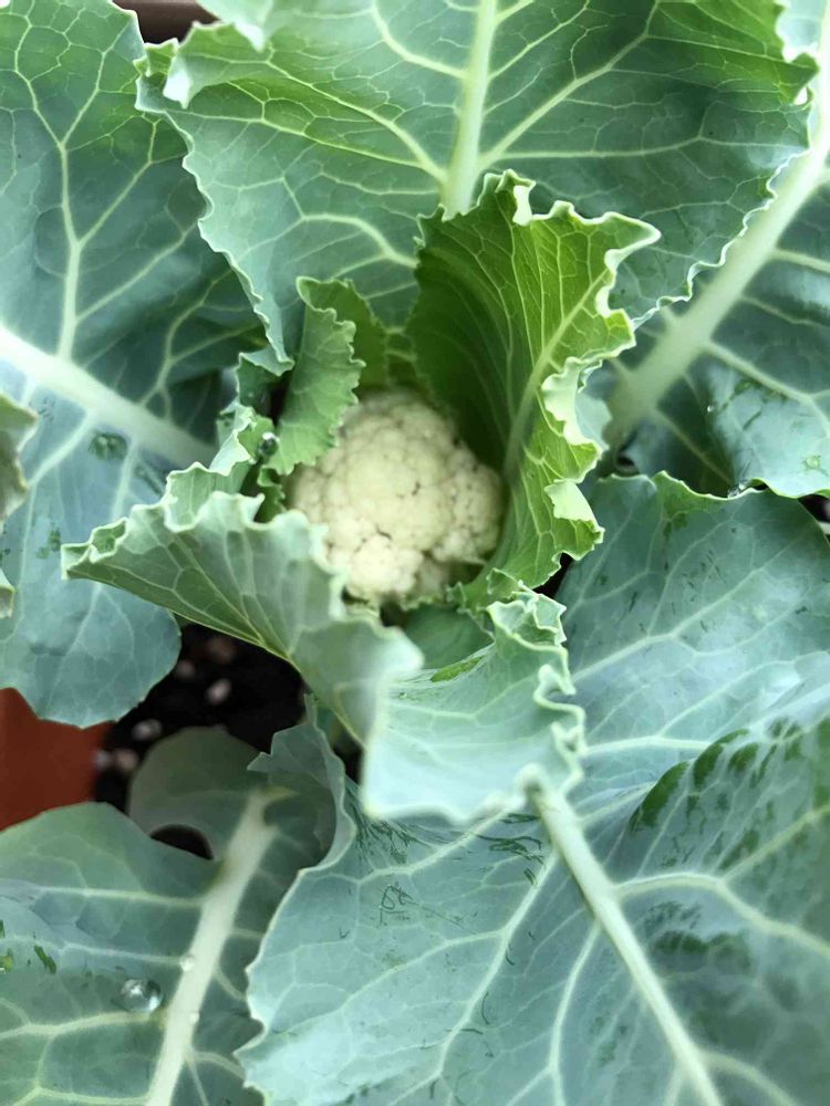 カリフラワーの花蕾がだんだん大きくなってきました。鶏卵ほどになったら、葉っぱで包むとか、初めてのことでドキドキ💓です。