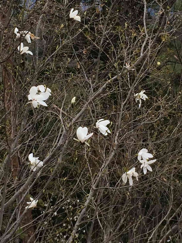 山の中で見かけるコブシの白いお花、季節の移り変わりを教えてくれるのですね〜🌿😌