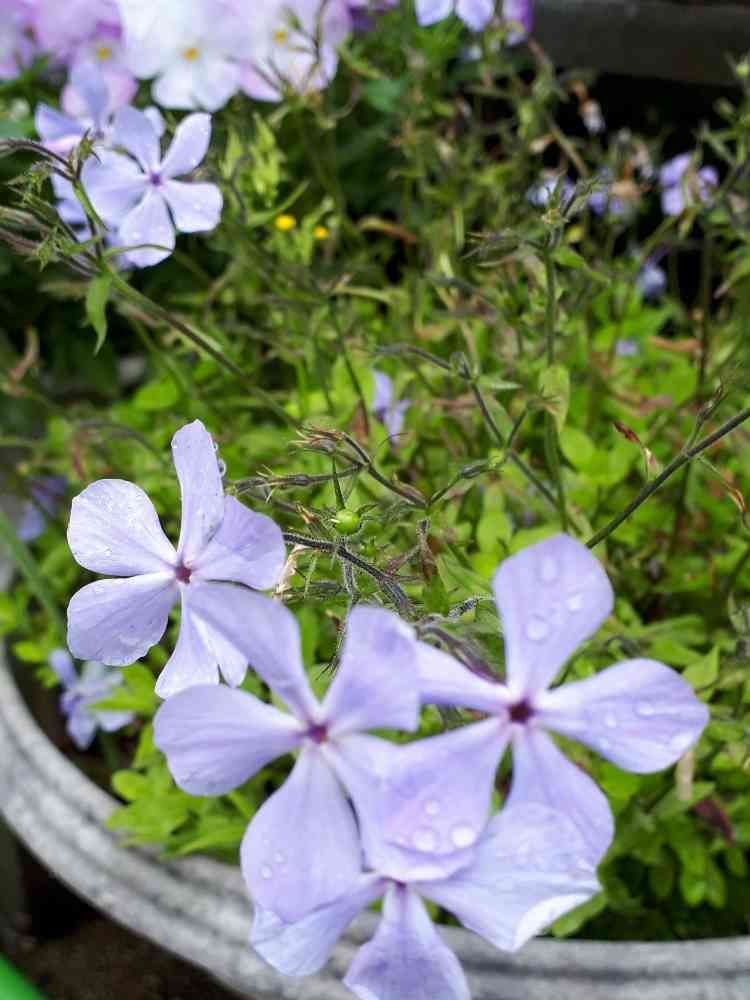 ハナシノブ科のフロックス・デイバリカタ《ブルーパヒューム》との事です💠白花の《ホワイトパヒューム》も有るそう💓 Phlox=ハナシノブ科クサキョウチクトウ属(フロックス属) デイバリカタ系は、ストロニフェラ系のツルハナシノブより