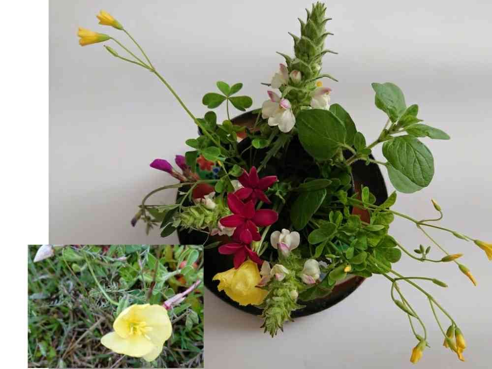 左下はきのうの雨上がりに土手で見つけた黄色い可愛いお花💖名前教えてください😃