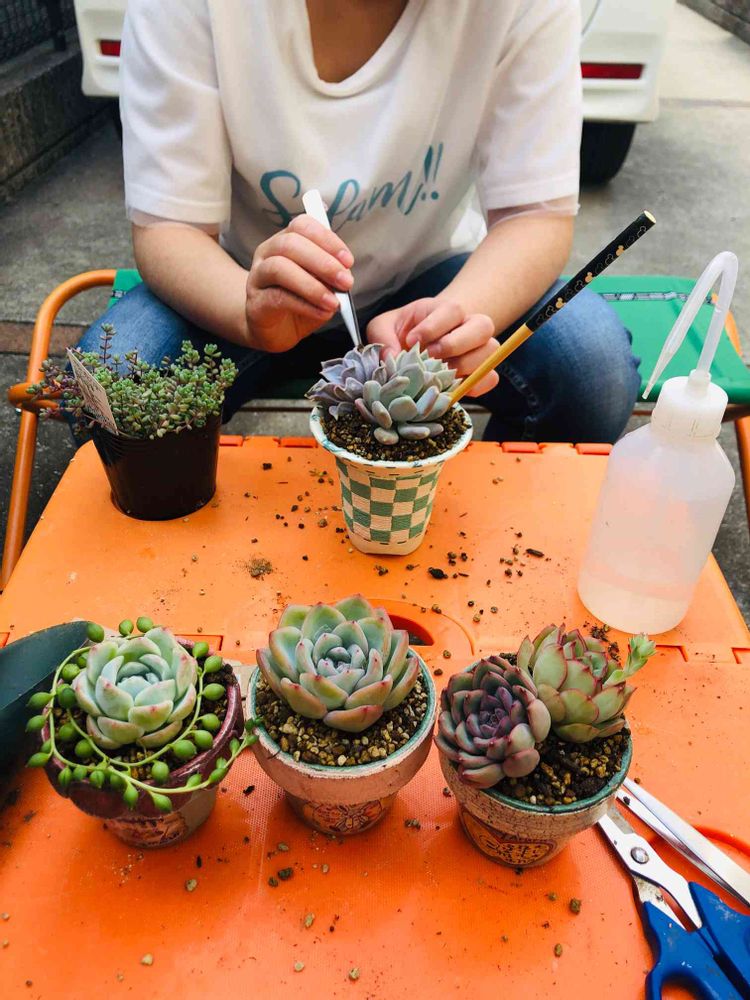 今日は娘と寄せ植え♥️