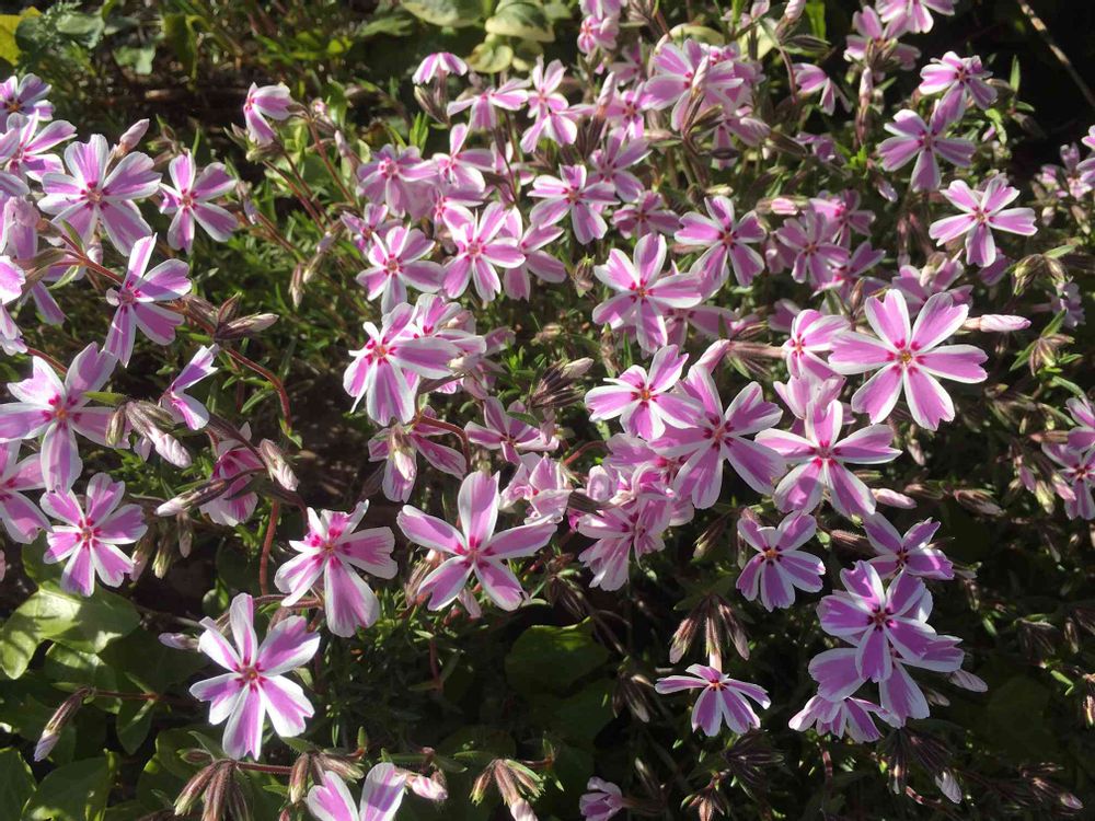 お散歩からの帰り道の途中にある石垣に咲いている芝桜ですが、白い縁取りが可愛いので気に入ってます。