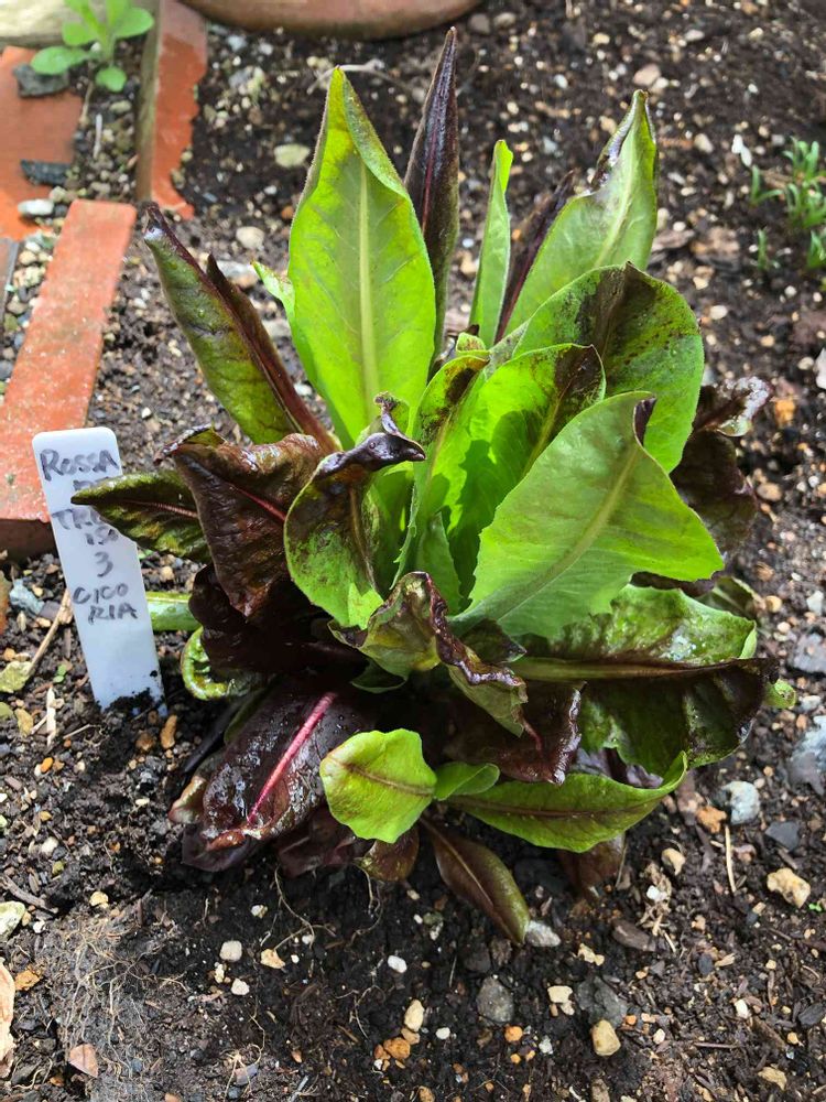 2年間程、鉢で育てた チコリ ロッサ デ トレビソ3 。種蒔きから育ててますが 全く お花が咲かないので 地植えにしたら、ボルドー色のチコリが ミドリに変わって来ました。。。変なのー。
