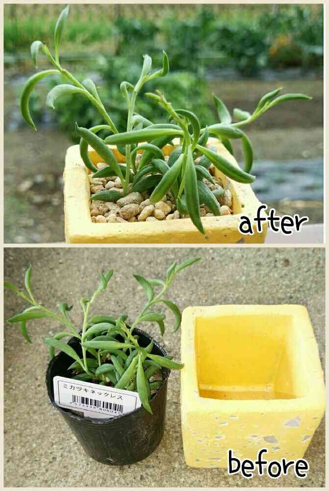 ハンギングタイプのセメントポットは無かったのでキューブタイプのセメントポットで植え付けました🌿✨