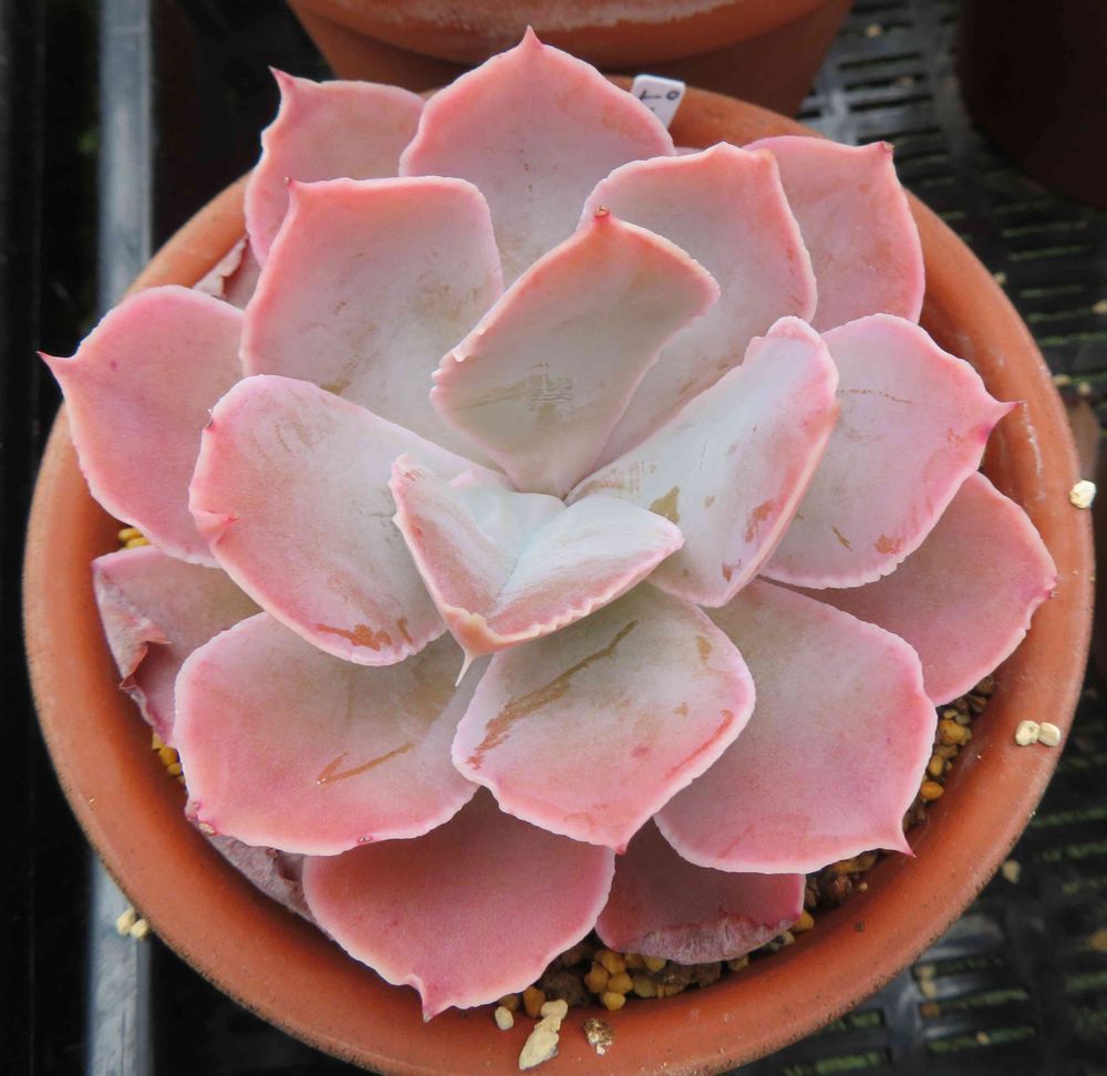 成長点が消えてしまったエケベリアのピンキー。脇に子株もないし、この先どうなるんでしょう。いい色を保っているだけに無事成長してほしい。