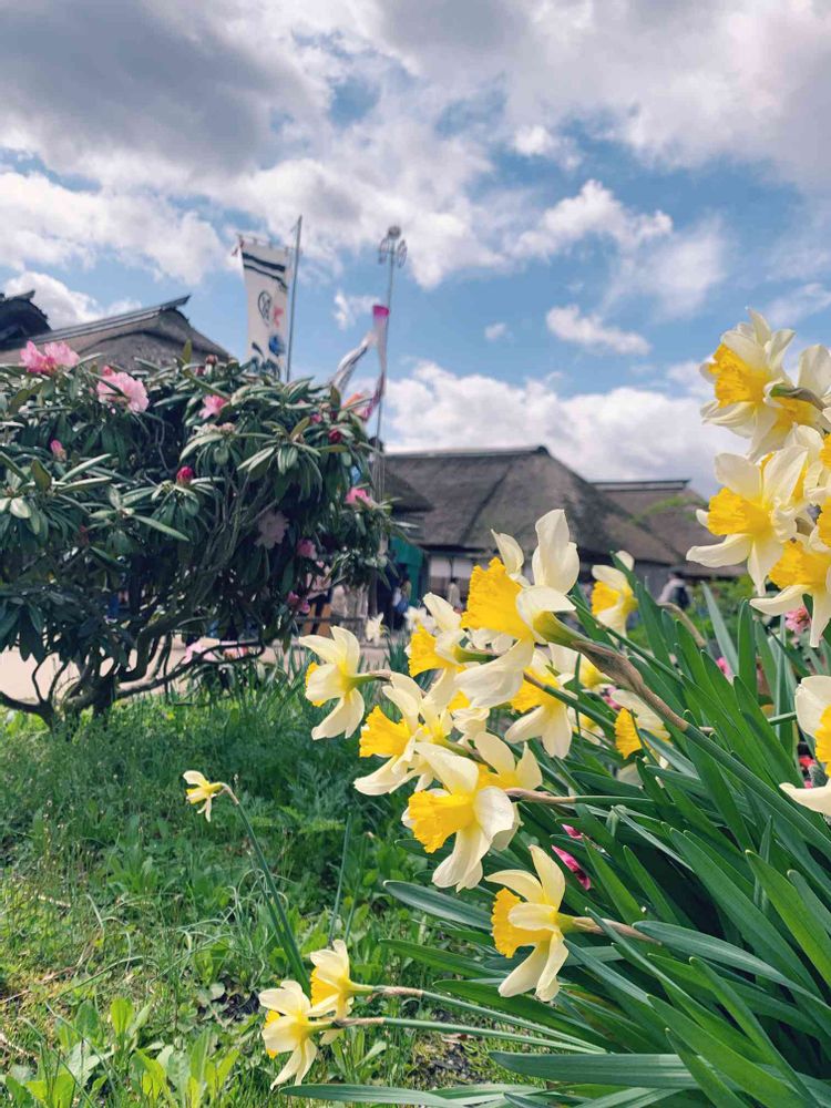 茅葺とお花たちと鯉のぼり🎏素敵な所でした😊