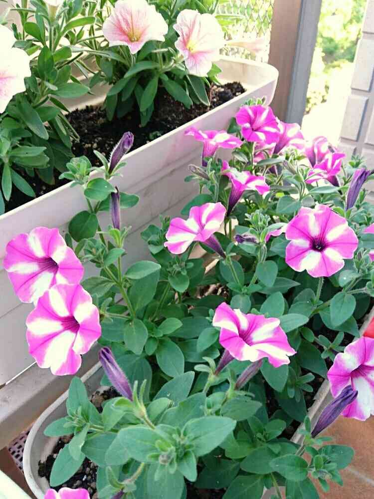バルコニー/ベランダ,ペチュニア ラズベリージャム,寄せ植えの投稿画像