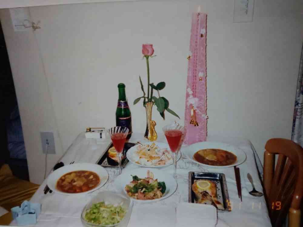 手料理ながら、ビーフシチューや主人の好きなフルーツサラダも用意して、なんて一生懸命だったんでしょう‼️ この頃はまだ新婚気分だったのかなぁ😆