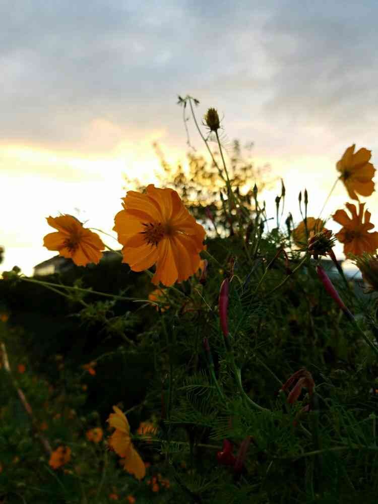キバナコスモスが沢山咲いていて夕焼け空が 秋ってかんじでした。