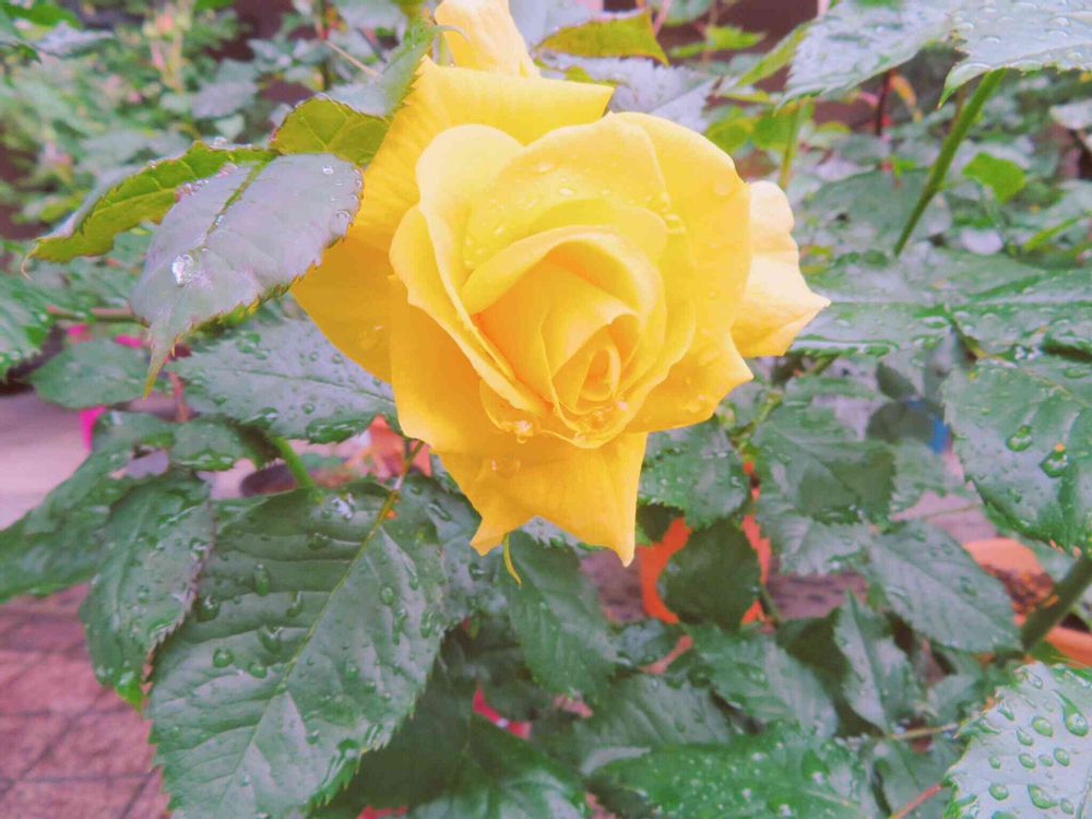 黄色の薔薇も泣いてるように見えます