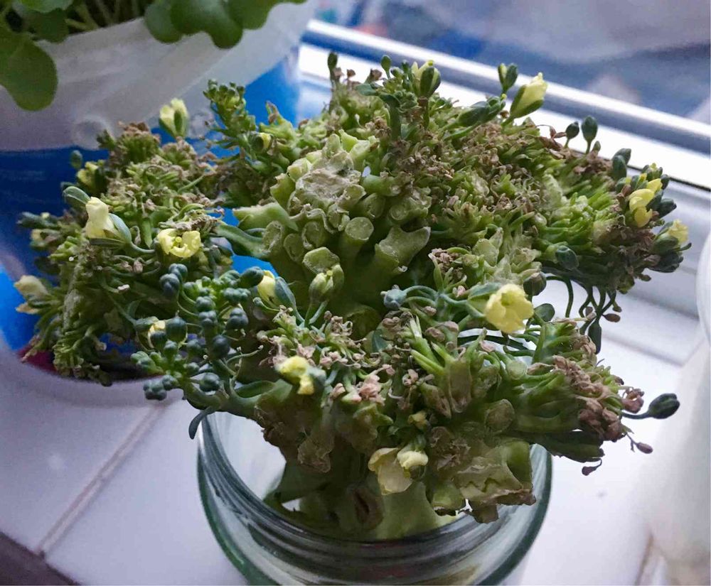 悪くなったブロッコリーを水につけておき茶色くなった部分を切り取って窓ぎわに置いておいたら生きている芽から黄色い花が!種はなるのかな〜。😆