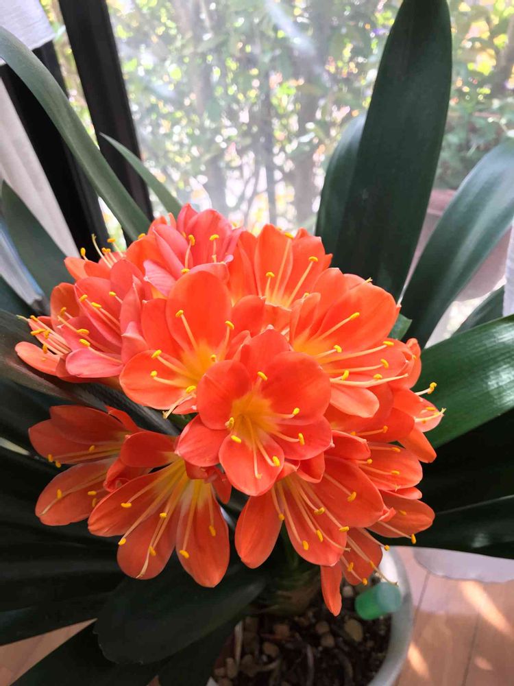 君子蘭満開なのね。綺麗なオレンジ色で立派だな。うちはまだまだ何も変化ないです。今年は咲かないのかな??