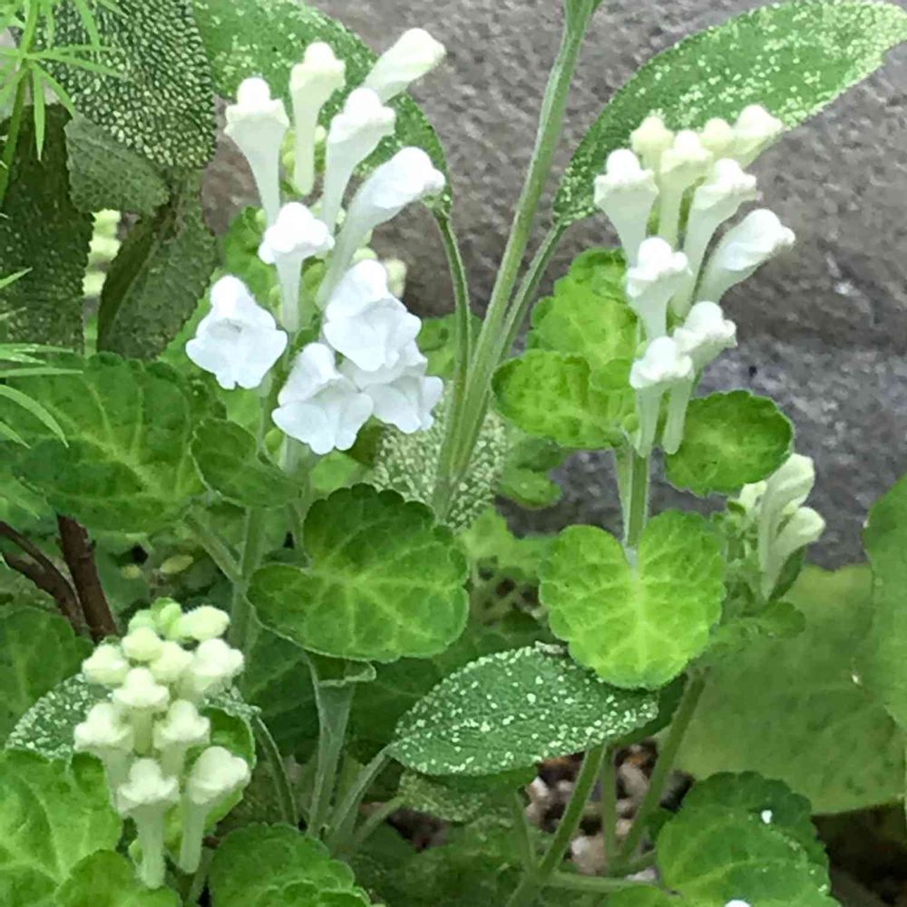 いつものセンスのいいお宅に、白のタツナミソウが咲き始めていました!