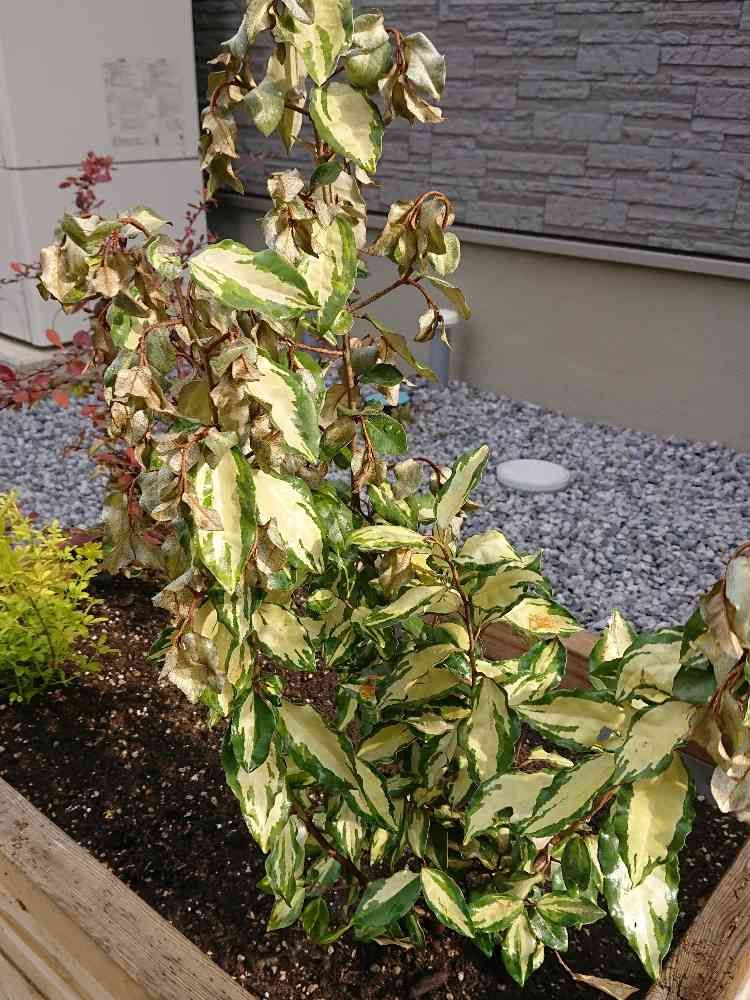 ナワシログミ マリリンを庭植検討中のNYACKです。少し赤みがあったり、元気のないところは、葉焼けですか?