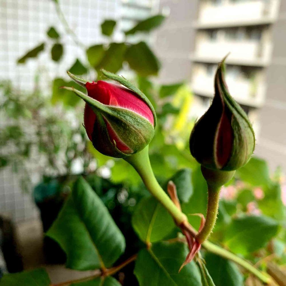 1年で一番わくわくする時期です。ベランダで育てているバラが春の花を咲かせようとしています。今年は株に元気が無く蕾も少な目…でも、今年の目標は株の充実なので花よりシュート!