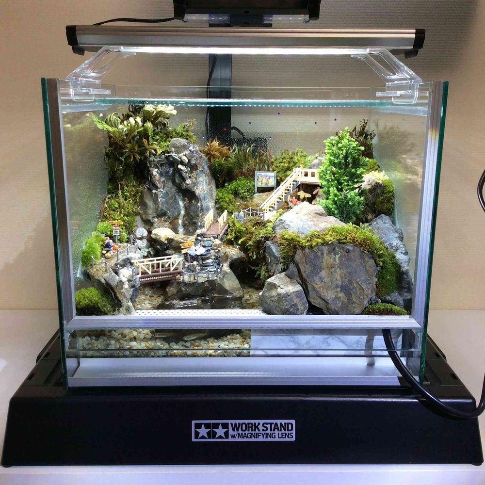 工作物やジオラマフィギュアを施したミニチュアガーデン!