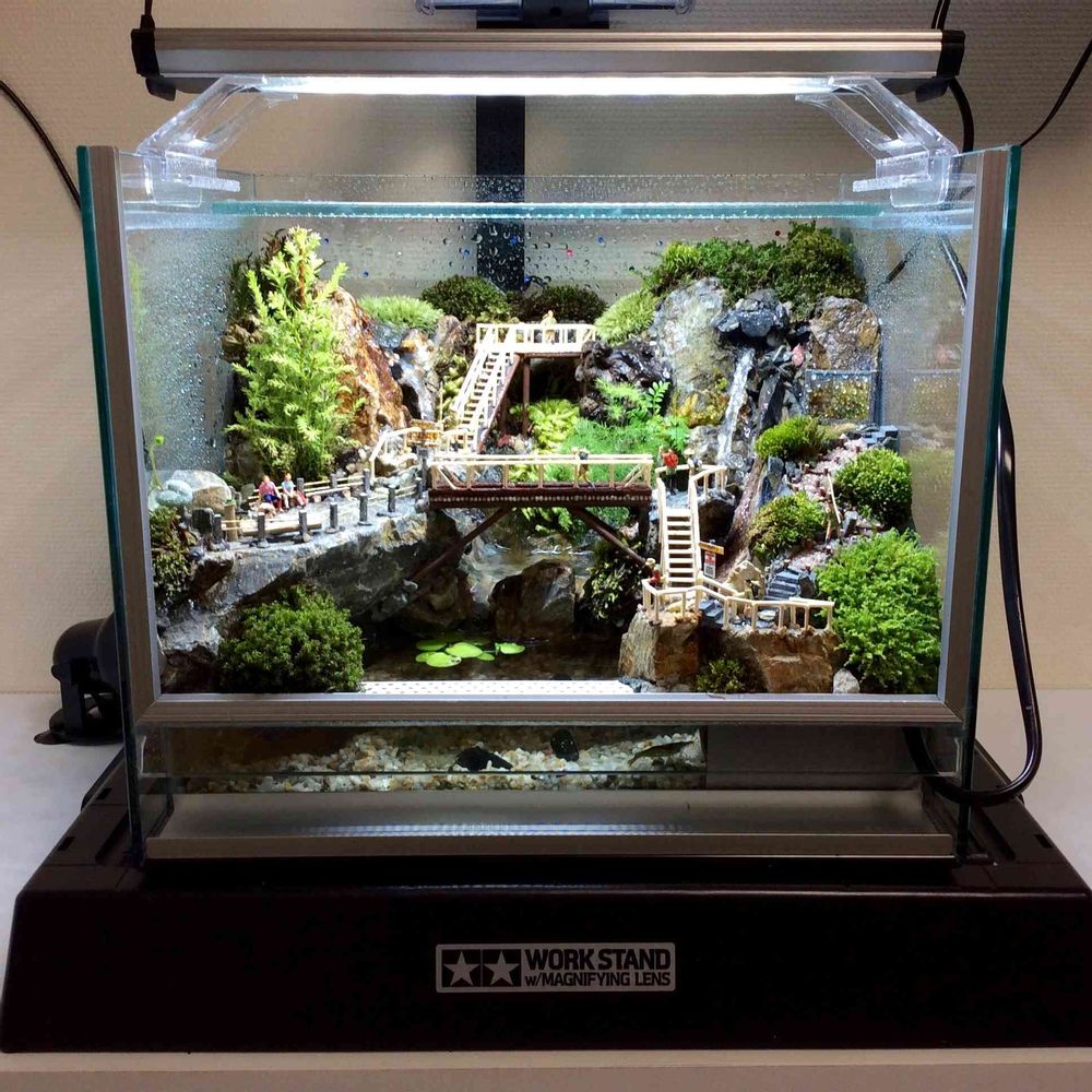 工作物やジオラマフィギュアを施したミニチュアガーデン!