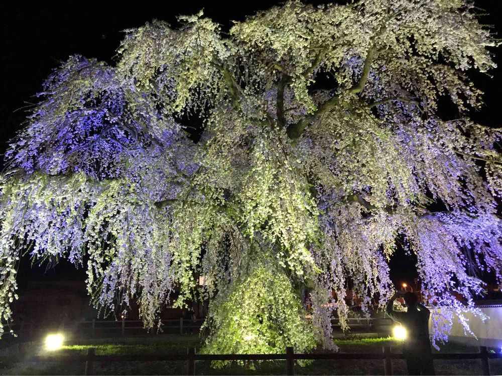 見事な垂れ桜ですね。ライトアップされてさらに綺麗に見えます。