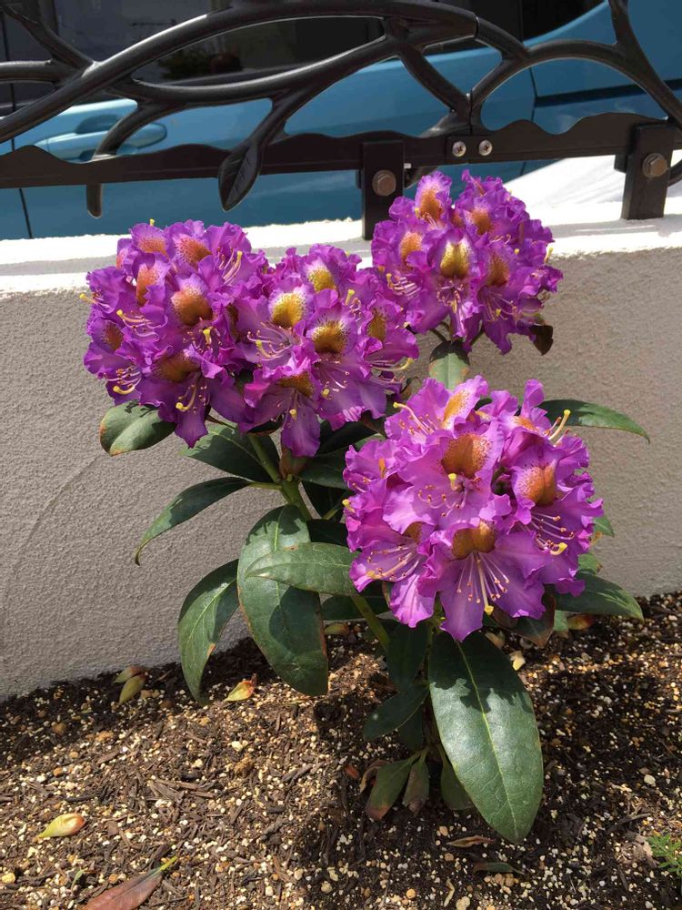 今年庭の小さい花壇に植えた西洋シャクナゲ:群青