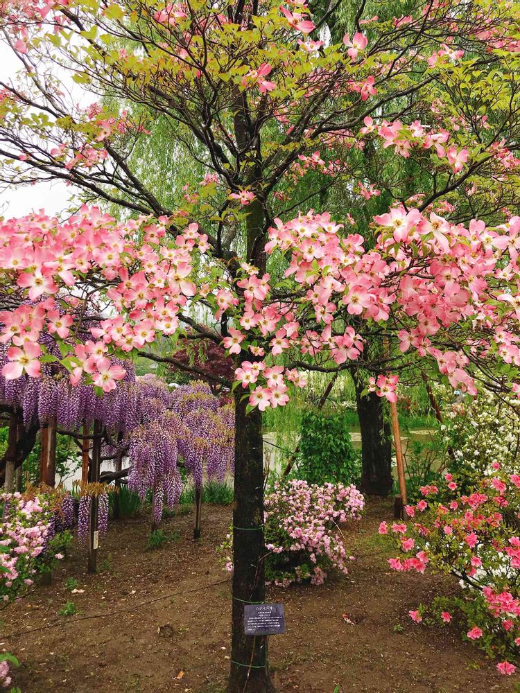 この写真、ハナミズキを中心に右にツツジ、左に紫藤となっていて結局好き