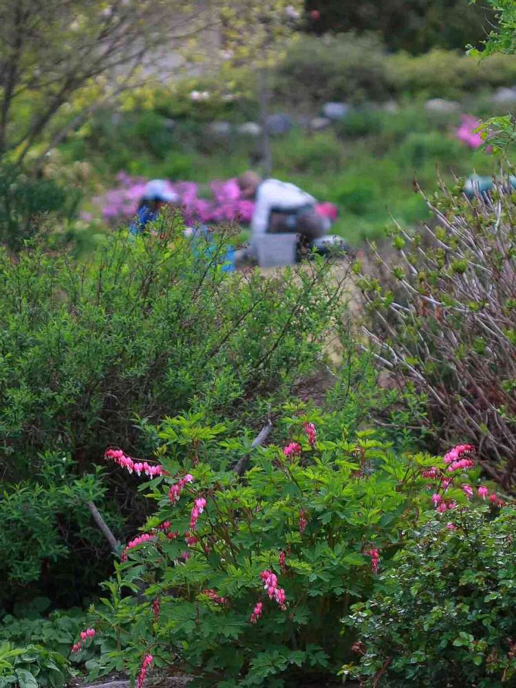 広いお庭も緑がいつぱいに、GSで初めて見ましたタイツリソウが赤く沢山咲いています💕🤗