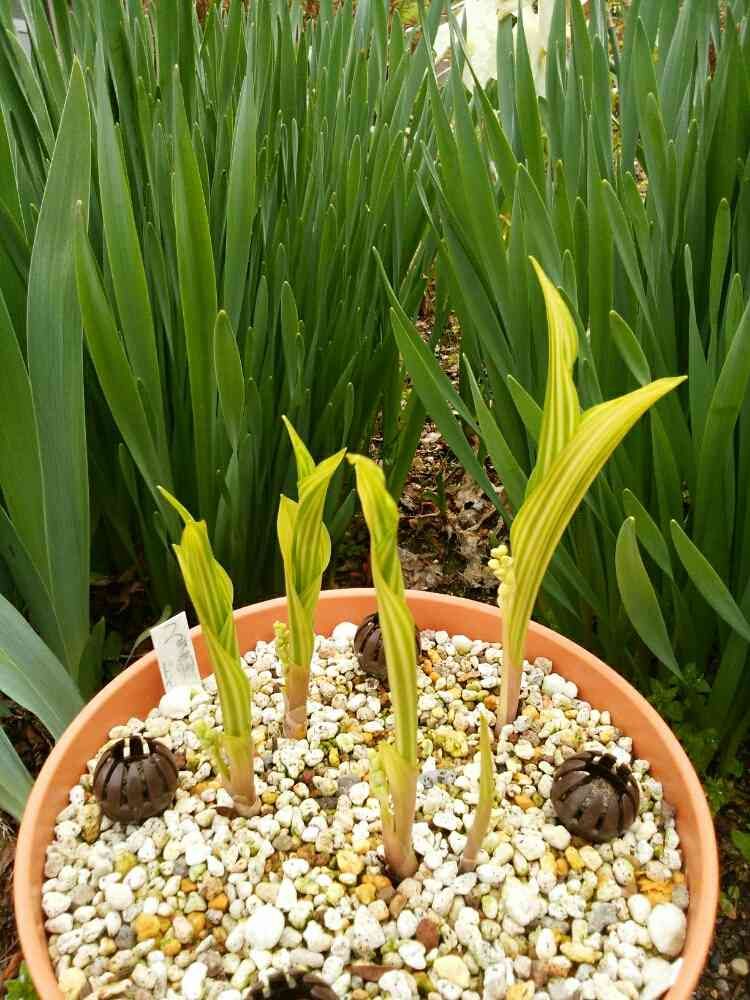 ドイツスズラン縞斑入りの芽出し