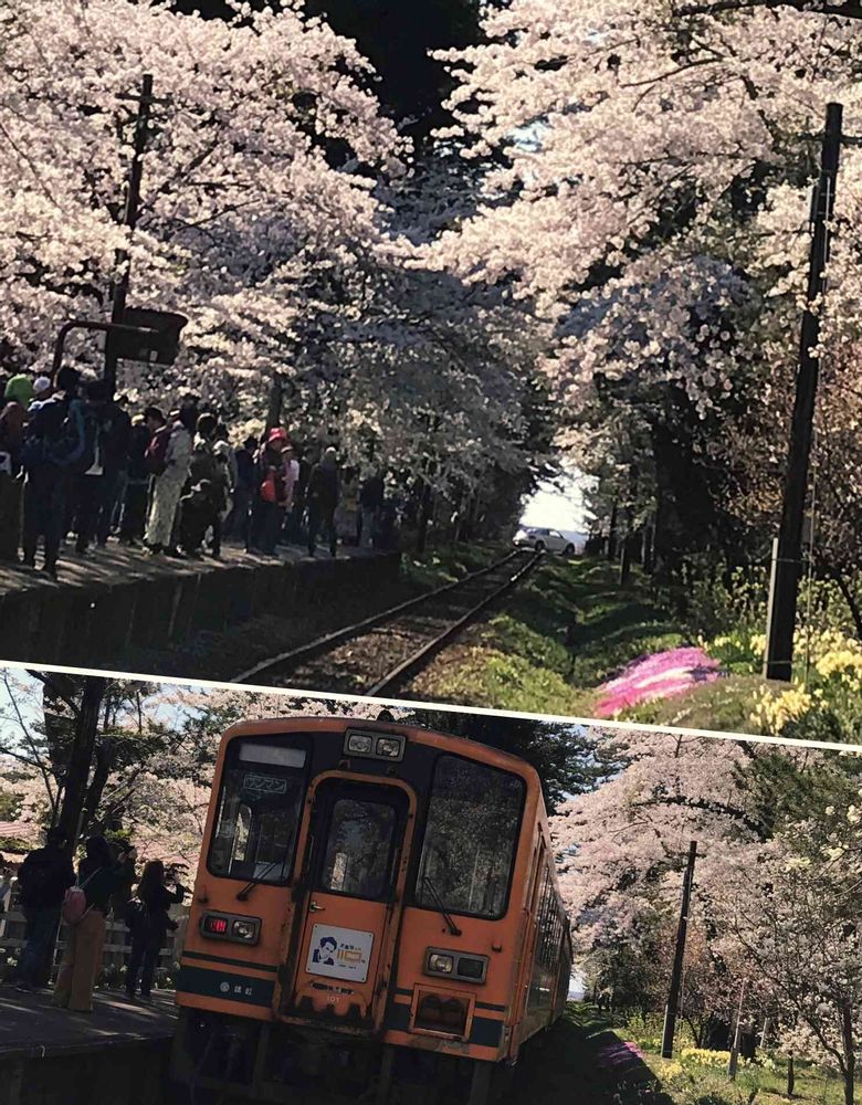 桜並木を文学の巨匠の名にちなんだ太宰治号に乗って行く旅、(ღ*ˇ ˇ*)。o♡ᔆᵘᵗᵉᵏⁱ♡いいなぁ~乗ってみたいです😍💕💕