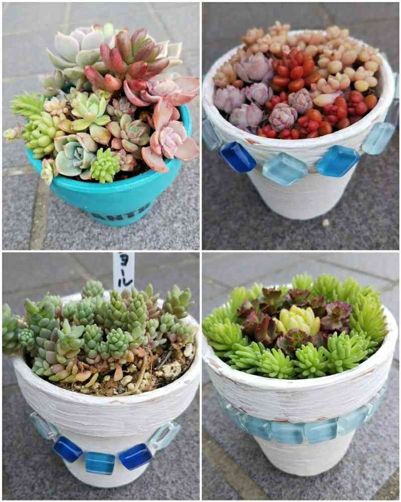 さん、45さんのリメ鉢かわいいよねー。うちのちっこい子、つめつめしちゃいました😏
