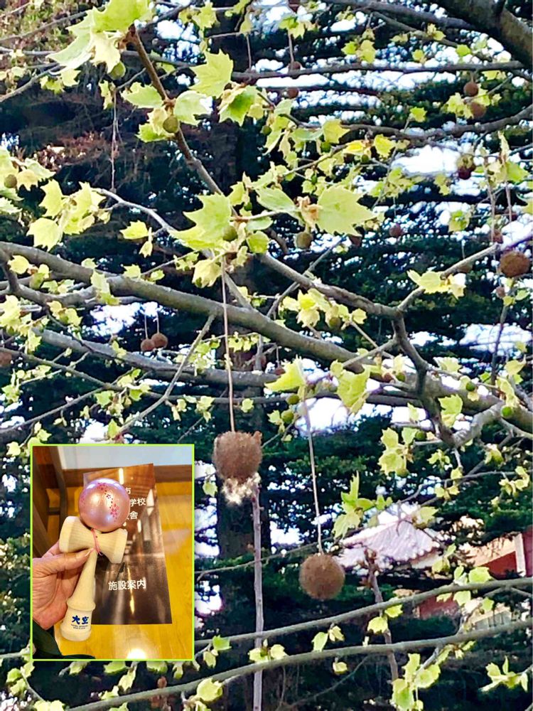 昨日の旧小学校を訪ねたら、プラタナスの実がまだあったの💨