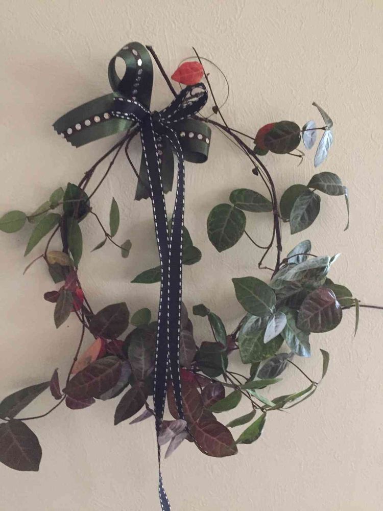 のびたつるで作ってみました。葉はあまり切らないのが好き。自然なままで。